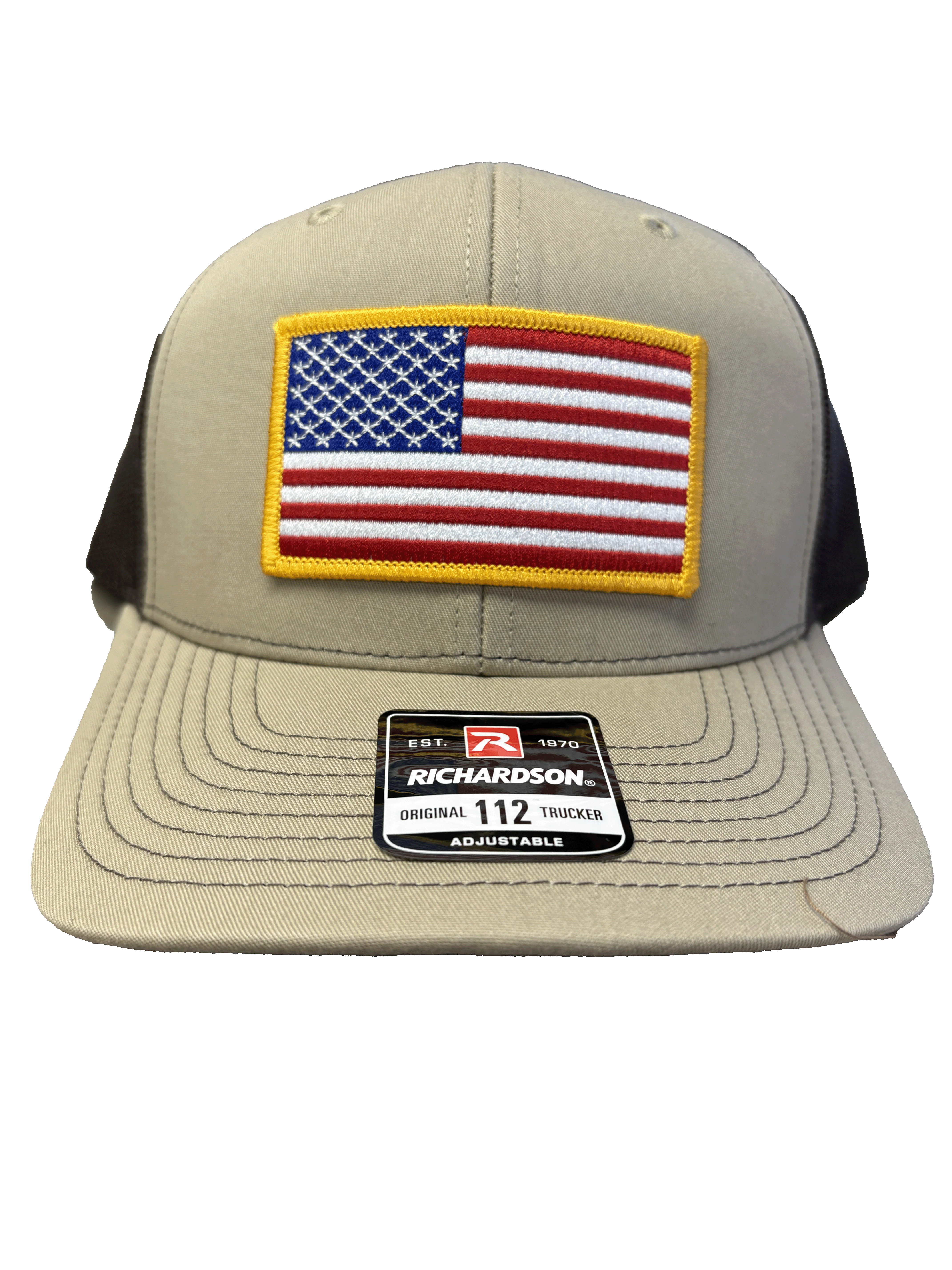 USA Flag Patch Hat, Richardson 112PT Trucker | Multicam Arid / Tan