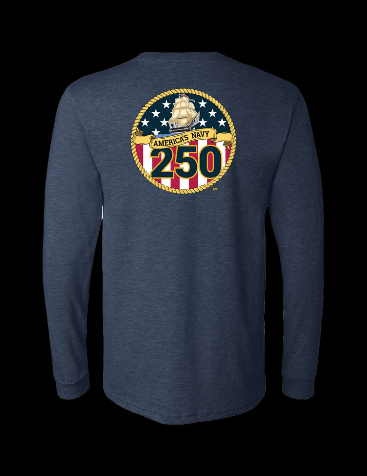 Navy 250th Birthday Long Sleeve T-Shirt (Heather Navy)